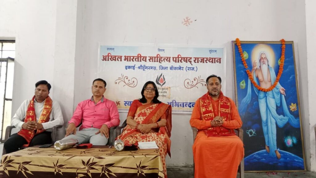 इकाई अध्यक्ष भगवती पारीक ‘मनु’ ने बताया कि कार्यक्रम का शुभारंभ वाल्मीकि प्रतिमा के समक्ष दीप प्रज्ज्वलन कर दीप मंत्र के साथ हुआ जिसमें प्रान्त उपाध्यक्ष मोनिका गौड़, श्रीराम आश्रम के संत मोहनदास महाराज, खंड कार्यवाह पवन गोहितान, अधिवक्ता पुखराज तेजी, अनिल वाल्मीकि, पवन शर्मा व अम्बिका डागा उपस्थित रहे।