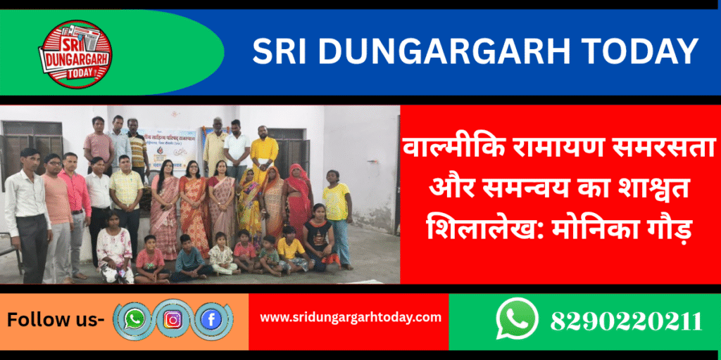 मुख्य अतिथि के रूप में बीकानेर से पधारी राजस्थानी व हिन्दी की वरिष्ठ साहित्यकार मोनिका गौड़ ने अपने व्यक्तव्य ने अपने वक्तव्य में कहा कि रामायण केवल धार्मिक ग्रंथ नहीं बल्कि भारतीय समाज में समरसता, संवाद और समन्वय का शाश्वत शिलालेख है। उन्होंने कहा कि वाल्मीकि ने शबरी, निषादराज गुह, वानरराज सुग्रीव और रावण जैसे पात्रों का मूल्यांकन कर्म और भावना से किया, जातीय पहचान से नहीं, यही उनके समावेशी दृष्टिकोण की पहचान है।