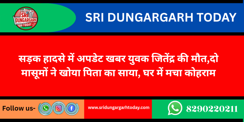 आज धनतेरस के दिन क्षेत्र के गांव लालासर में माहौल गमगीन हो गया देर रात हाइवे पर घुमचक्कर से कुछ ही दूर पर मोटरसाइकिल से गिरकर दो सवार घायल हुए। इनमें से ग्राम पंचायत सत्तासर के गांव लालासर निवासी 28 वर्षीय जितेंद्र सिंह पुत्र राजूसिंह की मौत हो गई। वहीं इसी गांव का 35 वर्षीय राजेंद्र सिंह उर्फ भालुसिंह पुत्र मदनसिंह घायल हो गया। जितेंद्र को उपजिला अस्पताल से बीकानेर रेफर कर दिया गया परंतु उसने पीबीएम अस्पताल पहुंचने से पहले ही दम तोड़ दिया। जितेंद्र चार व दो वर्ष के दो मासूम पुत्रों का पिता था और दो भाइयों में बड़ा भाई था। उसके पिता व छोटा भाई गमगीन है वहीं घर में माता व पत्नी के करूण क्रंदन से पूरे गांव में शोक की लहर छा गई है। जितेंद्र गांव में सहकारी समिति का व्यवस्थापक था। वह शुक्रवार को समिति के कोई बिल जमा करवाने बीकानेर गया था।