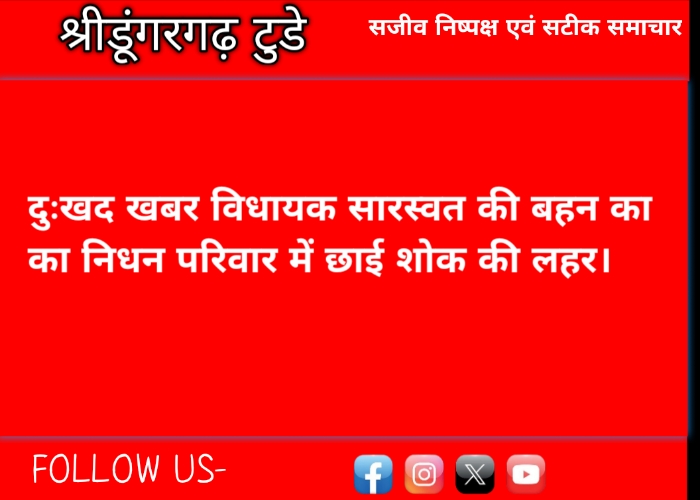 रोशनी के पर्व दीपावली के बीच गुसाईंसर बड़ा गांव में दुख और शोक का माहौल छा गया। श्रीडूंगरगढ़ से भाजपा विधायक ताराचंद सारस्वत की छोटी बहन दुर्गादेवी (65) का रविवार रात एक दर्दनाक हादसे में निधन हो गया।