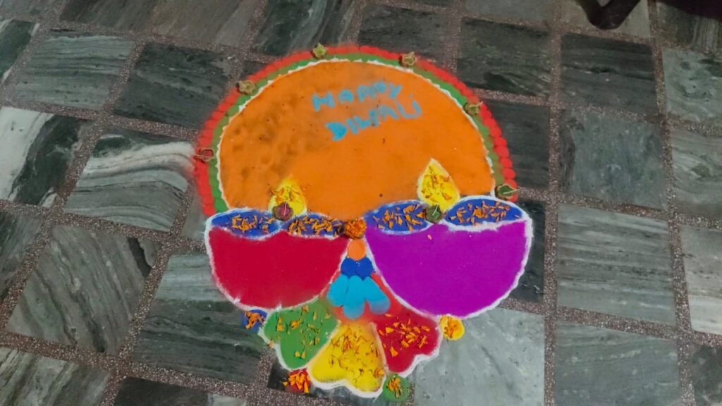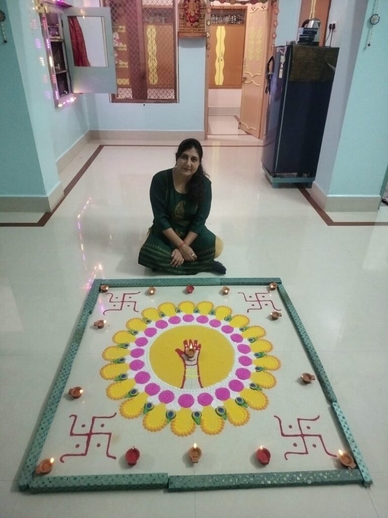 कालूबास में सोमाणी परिवार में सजाई शानदार रंगोली।