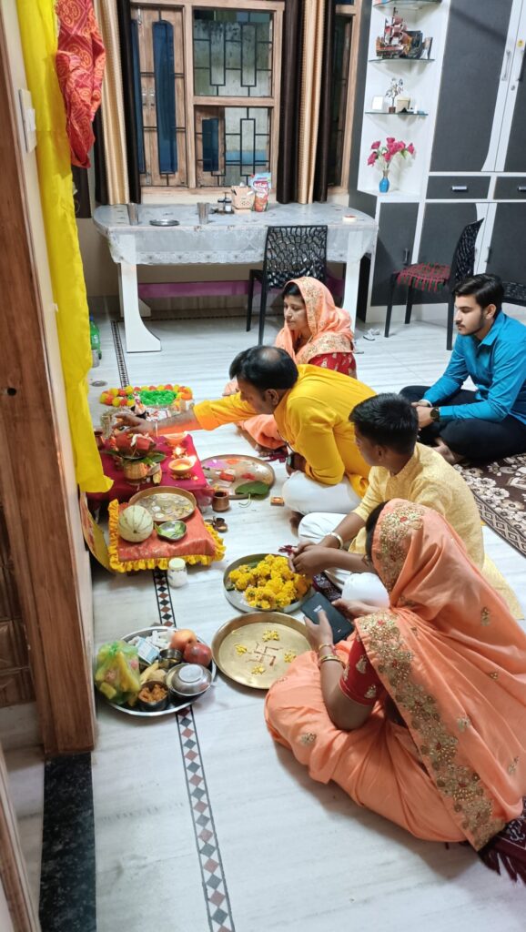 सूर्यप्रकाश गांधी परिवार ने एकसाथ पूजन किया और छोटों ने लिया बड़ों का आशीर्वाद