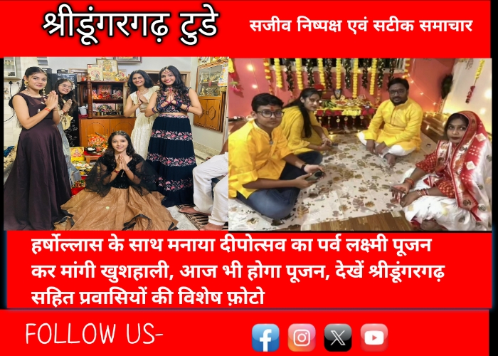हर्षोल्लास के साथ मनाया दीपोत्सव का पर्व लक्ष्मी पूजन कर मांगी खुशहाली, आज भी होगा पूजन, देखें श्रीडूंगरगढ़ सहित प्रवासियों की विशेष फ़ोटो