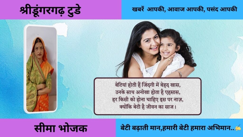 फेशनपरस्ती की दुनिया से बचाओ, बेटी को कठिन परिश्रम करना सीखाओ। बेटी है घर की शान, बेटी बढ़ाती मान, हमारी बेटी हमारा अभिमान ।