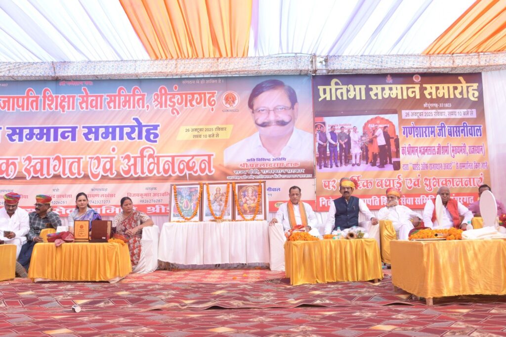 कार्यक्रम की अध्यक्षता श्रीडूंगरगढ़ के जयचंदलाल अडावलिया ने की एवं कार्यक्रम संरक्षक गणेशमल बावनीवाल रहे। प्रजापति शिक्षा सेवा समिति के अध्यक्ष गोविंद प्रसाद बासनीवाल, संरक्षक विजयकुमार अडावलिया, उपाध्यक्ष मोहनलाल मीणोठिया, मंत्री रामचंद्र छापोला, कोषाध्यक्ष नारायण लखेसर, विशिष्ट कार्यकर्ता रमेश बासनीवाल ने अतिथियों का स्वागत किया।