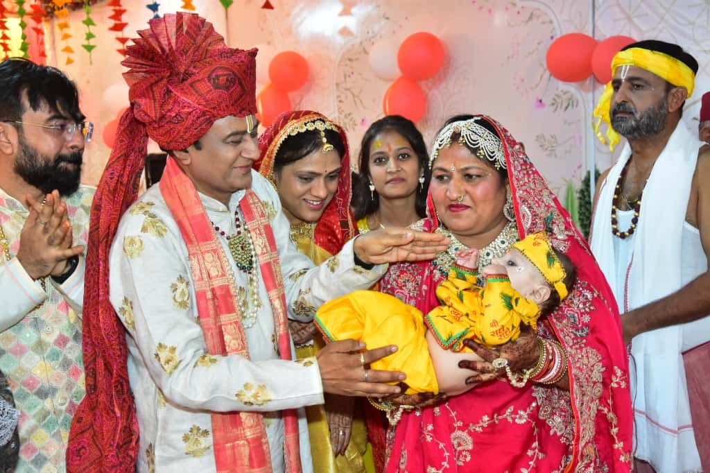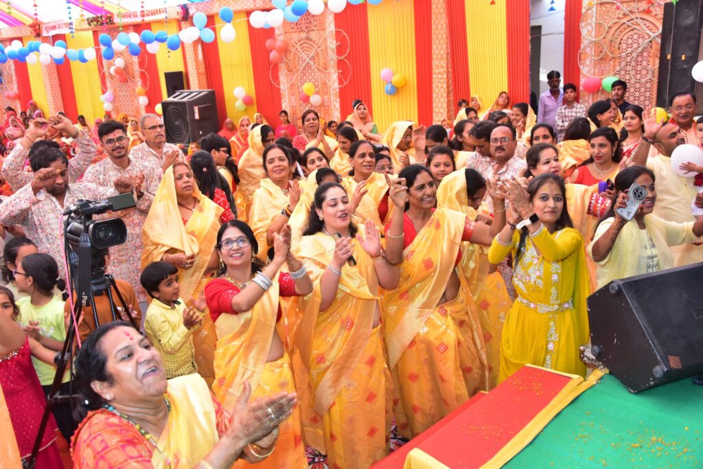 दुलचासर में मूंधड़ा परिवार द्वारा आयोजित श्रीमद्भागवत कथा के चौथे दिन कृष्ण जन्मोत्सव पर झूमे श्रद्धालु।