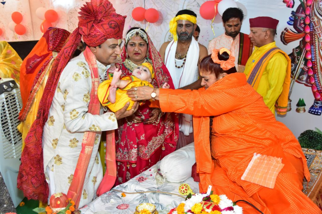 दुलचासर गांव के माहेश्वरी भवन में चल रहे संगीतमय श्रीमद् भागवत कथा के चौथे दिन सोमवार को कथा स्थल पर नंदोत्सव मनाया गया। पांडाल को सुगंधित फूलों से विशेष रूप से सजाया गया। कथा में जैसे ही कृष्ण जन्म का प्रसंग आया, नंद बाबा टोकरी में कन्हैया को लिए पंडाल में पहुंच गए। इसी के साथ पूरा पंडाल “नंद के घर आनंद भयो… के जयकारों से गूंज उठा। श्रद्धालुओं ने एक-दूसरे को मिठाई खिलाकर कृष्ण जन्मोत्सव की बधाइयां दी।श्रीकृष्ण जन्मोत्सव के दौरान बाल गोपाल की झांकी ने भक्तों का मन मोह लिया।भक्ति के आनंद से अभिभूत होकर महिला और पुरुष श्रद्धालु नृत्य करने लगे। अपने प्रवचन में कथावाचिका साध्वी करूणागिरी महाराज ने कहा कि प्रभु श्री कृष्ण का जन्म केवल एक ऐतिहासिक घटना नहीं, बल्कि अधर्म पर धर्म की विजय का भी प्रतीक भी है। संसार में जब-जब अन्याय और पाप बढ़ता है। भगवान किसी न किसी रूप में अवतरित होते हैं और धर्म की पुनः स्थापना करते हैं। उन्होंने भक्तों को गीता के उपदेशों का पालन करने और जीवन में सत्य, प्रेम व सेवा का भाव अपनाने का संदेश दिया। राजस्थान सरकार राज्य मंत्री दर्जा प्राप्त श्री विश्वकर्मा कौशल विकास बोर्ड के अध्यक्ष राम गोपाल सुथार भी पहुंचे आयोजन समिति के विकेश मूंधड़ा, सोनल मूंधड़ा ने बताया कि गुरुवार शाम को श्रीमद् भागवत की विधिवत पूर्णाहुति होगी। इसके बाद शोभायात्रा निकलेगी।