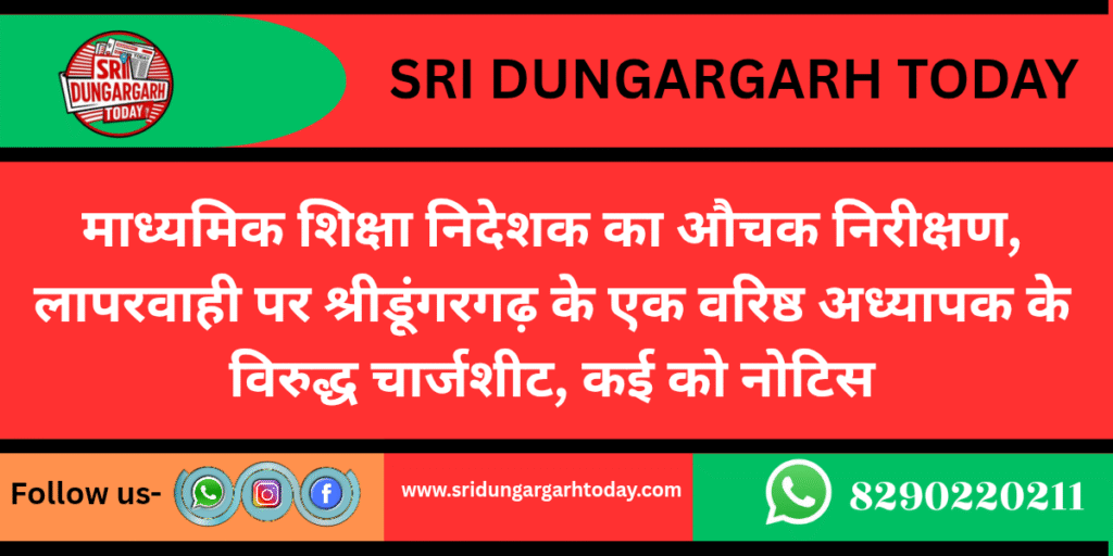 माध्यमिक शिक्षा निदेशक का औचक निरीक्षण, लापरवाही पर श्रीडूंगरगढ़ के एक वरिष्ठ अध्यापक के विरुद्ध चार्जशीट, कई को नोटिस