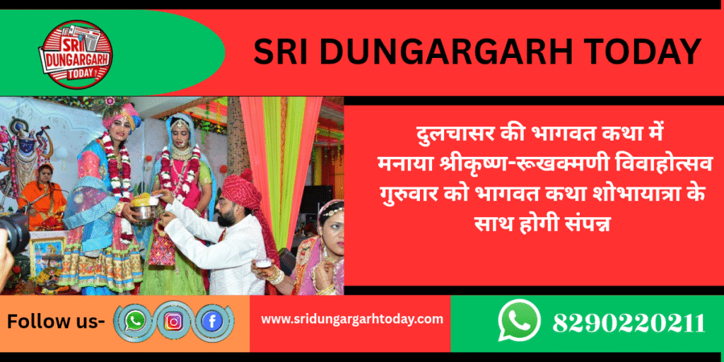 कथावाचिका ने भगवान श्रीकृष्ण के विवाह प्रसंग को सुनाते हुए बताया कि भगवान श्रीकृष्ण का प्रथम विवाह विदर्भ देश के राजा की पुत्री रुक्मणि के साथ संपन्न हुआ। इस कथा में समझाया गया कि रुक्मणि स्वयं साक्षात लक्ष्मी है और वह नारायण से दूर रह ही नहीं सकती। यदि जीव अपने धन अर्थात लक्ष्मी को भगवान के काम में लगाएं तो ठीक, नहीं तो फिर वह धन चोरी द्वारा, बीमारी द्वारा या अन्य मार्ग से हरण हो ही जाता है। धन को परमार्थ में लगाना चाहिए और जब कोई लक्ष्मी नारायण को पूजता है या उनकी सेवा करता है तो उन्हें भगवान की कृपा स्वत: ही प्राप्त हो जाती है। श्रीकृष्ण भगवान व रुक्मणि के अतिरिक्त अन्य विवाहों का भी वर्णन किया गया। कथा सुनने के लिए बड़ी संख्या में श्रद्धालु श्रोतागण पहुंचे। गुरुवार को सात दिवसीय कथा सम्पन्न होगी और समापनावसर पर शोभायात्रा निकलेगी।