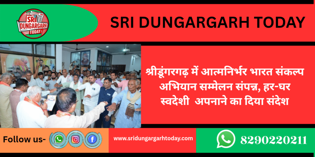 भारतीय जनता पार्टी श्रीडूंगरगढ़ कार्यालय में आज आत्मनिर्भर भारत संकल्प अभियान सम्मेलन का सफल आयोजन किया गया। कार्यक्रम में विधायक ताराचंद सारस्वत, भाजपा देहात जिलाअध्यक्ष श्याम पंचारिया एवं मुख्य वक्ता ओम सारस्वत मुख्य रूप से उपस्थित रहे।