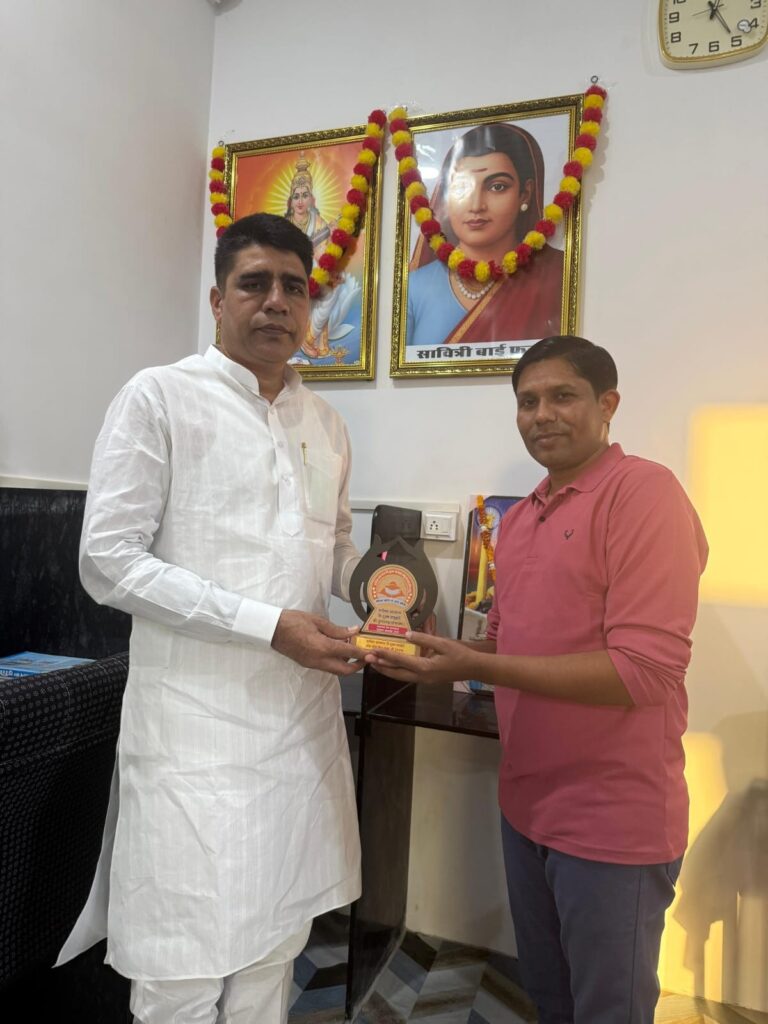 श्रीडूंगरगढ़ कस्बे की देवनारायण कॉलोनी स्थित बालिका स्वाध्याय निशुल्क लाइब्रेरी रविवार शाम को औचक निरीक्षण करते हुए राजेंद्र बापेऊ ने लाइब्रेरी निदेशक योगाचार्य ओम प्रकाश कालवा और उनकी टीम का आभार व्यक्त करते हुए कहा सर्व समाज की जरुरतमंद 50 बेटियों के लिए जो शिक्षा सेवा कार्य शुरू किया है बहुत ही सराहनीय व कस्बे को गौरवान्वित करने वाला कार्य बताते हुए दिल की अनंत गहराइयों से सराहा। निदेशक ओम कालवा ने जानकारी देते हुए बताया कि राजेंद्र बापेऊ प्रदेश के किसान, गरीब, मजदूर, दलित, शोषित, वंचितों की आवाज़ बनकर उभरने वाला शानदार जाबाज और लड़ाकू नेता है जो सर्व समाज के हक ओर उनके अधिकारों व स्वाभिमान के लिए सदैव तैयार रहते हैं। ऐसे जाबाज नेता को लाइब्रेरी परिवार की ओर से प्रतीक चिन्ह प्रदान कर सम्मानित किया। ओम कालवा और बापेऊ के बीच एक घंटे की वार्ता चली जिसमें प्रदेश के बेरोजगार योग प्रशिक्षकों के स्थाई रोजगार ओर उनकी विभिन्न मांगों की समस्या समाधान हेतु भावी योजनाओं पर चर्चा की।