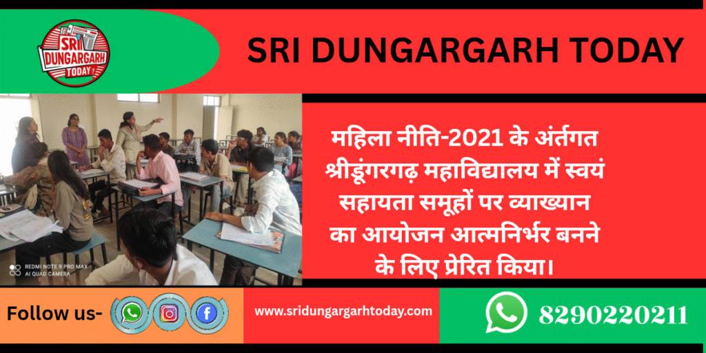 आयुक्तालय कॉलेज शिक्षा, राजस्थान जयपुर के आदेशानुसार राजस्थान राज्य महिला नीति- 2021 के तहत मंगलवार को स्थानीय महाविद्यालय में “स्वयं सहायता समूह (SHG) गठन एवं उनकी उपयोगिता” विषय पर व्याख्यान का आयोजन किया गया।