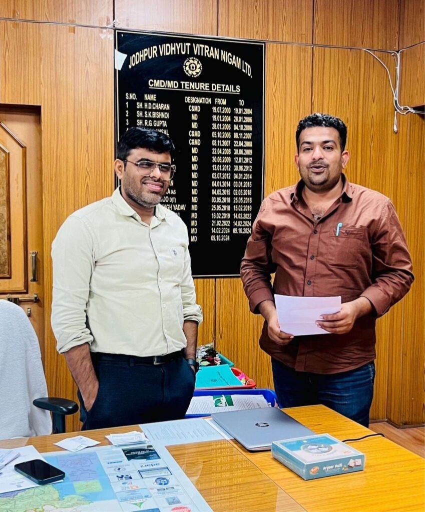 किसानों के सामने बिजली आपूर्ति संबंधी समस्याओं को लेकर युवा नेता आरएलपी के प्रदेश प्रवक्ता डॉ विवेक माचरा ने जोधपुर में विद्युत वितरण निगम के निदेशक आइएएस लेखराम डेलू से जोधपुर में मुलाकात की। डॉ विवेक माचरा ने निदेशक से मुलाकात में सरकार की योजनाओं के क्रियान्वयन पूर्ण रूप से ना होने के कारण सरकार के अरबों रुपए लगने के बावजूद किसान सदैव पीड़ा में ही रहता है।