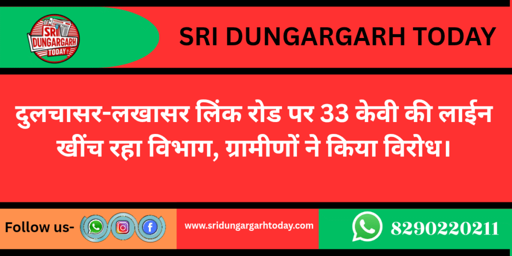 दुलचासर को जयपुर हाईवे से जोड़ने वाली दुलचासर लखासर लिंक रोड़ पर विधुत निगम की ओर से सड़क से सटाकर सीमेंटेड खम्भे खड़े करते हुए 33 केवीए की विधुत लाईन खींचने का कार्य किया जा रहा है। निगम की इस लापरवाही से इस सिंगल रोड़ पर जहां सामने से दूसरा वाहन आने पर आवागमन बाधित होगा। वहीं सड़क दुर्घटना की प्रबल आंशका सदा बनी रहेगी। निगम की इस लापरवाही का विरोध करते हुए जिला परिषद सदस्य श्रीराम भादू ने बताया कि गलत जगह पर खड़ी की जा रही इस लाइन कार्य के संबंध में गत 12 अगस्त 2025 को मौके की फोटो सहित सानिवि के सहायक अभियंता को अवगत कराया था। वही 1 अक्टूबर 2025 को मैंने बीकानेर जिला परिषद की साधारण सभा में गलत जगह खड़ी की जा रही लाइन को सड़क मार्ग की निश्चित दूरी के बाद खड़ी करने के संदर्भ में प्रस्ताव रखा था। जिस पर बैठक में मौजूद विद्युत विभाग में अधीक्षण अभियंता ने सदन को आश्वस्त किया था कि बिजली के सीमेंट खम्बो को सड़क सीमा से हटकर सही जगह पर 15 दिनों की अवधि में लगा दिए जाएंगे। लेकिन एक माह बीतने के बाद भी इस लिंक रोड पर खंबे यथावत खड़े हैं। जिसके बाद गत 30 अक्टूबर 2025 को श्रीडूंगरगढ़ एसडीएम को भी सभी दस्तावेज और मौके की फोटो सहित मुलाकात कर उचित कार्रवाई की मांग की गई है।