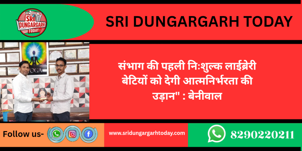 श्री डूंगरगढ़ (बीकानेर): शिक्षा के क्षेत्र में ऐतिहासिक पहल करते हुए, कस्बे को ‘बालिका स्वाध्याय निःशुल्क लाईब्रेरी’ (Reg. No. RJ08-010443) का शुभारंभ किया गया है। यह लाईब्रेरी विशेष रूप से शिक्षा से वंचित, ग्रामीण एवं जरूरतमंद 50 बेटियों के लिए समर्पित है, जो इसे संभाग की पहली ऐसी महत्वपूर्ण पहल बनाती है। लाइब्रेरी परिवार के आजीवन सदस्य योग प्रेमी बलराम बेनीवाल ने इस प्रयास को सर्व समाज एवं सामुदायिक प्रेरणा का शिखर बताया है।