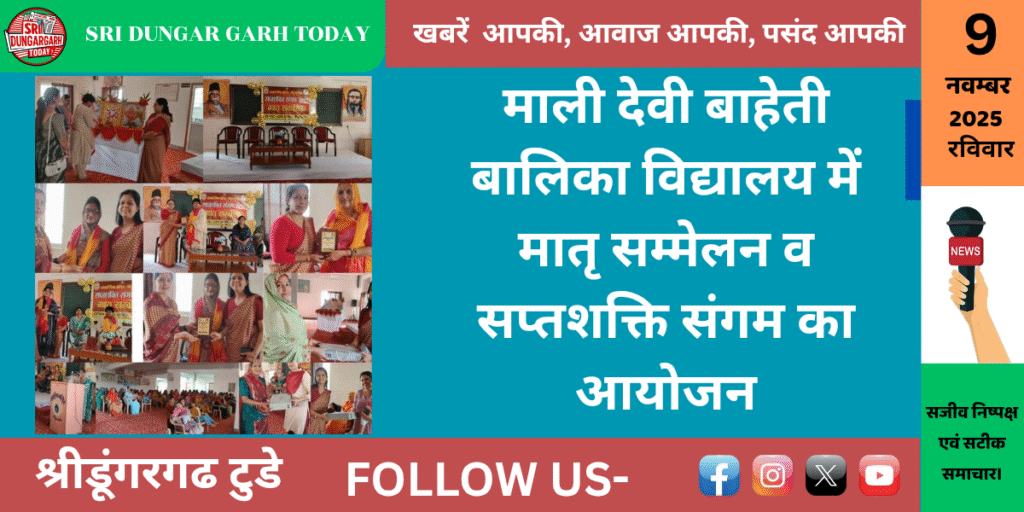 श्रीमती माली देवी कोड़ामल बाहेती बालिका उच्च माध्यमिक विद्यालय श्री डूंगरगढ़ में रविवार को सप्तशक्ति संगम 2025 व मातृ सम्मेलन कार्यक्रम का आयोजन किया गया कार्यक्रम का प्रारंभ मां सरस्वती मां भारती के समक्ष दीप प्रज्वलन से की गई।