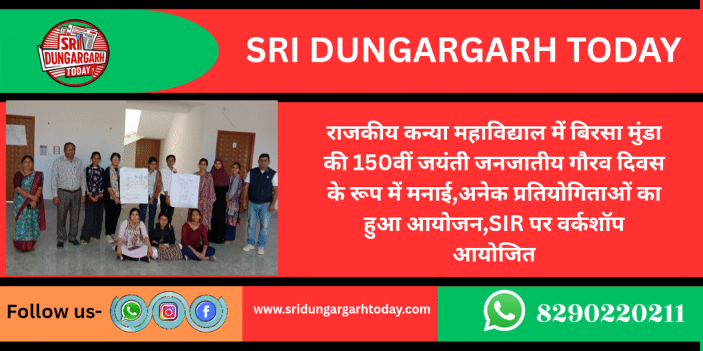 राजकीय कन्या महाविद्याल में बिरसा मुंडा की 150वीं जयंती जनजातीय गौरव दिवस के रूप में मनाई,अनेक प्रतियोगिताओं का हुआ आयोजन,SIR पर वर्कशॉप आयोजित