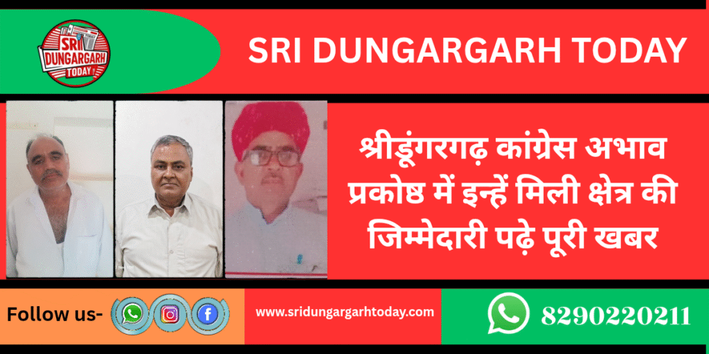 कांग्रेस अभाव प्रकोष्ठ की नई नियुक्तियों में श्रीडूंगरगढ़ से तीन सक्रिय जनप्रतिनिधियों को अहम जम्मेदारी मिली है।डेलवा सरपंच डालूराम मेघवाल को श्रीडूंगरगढ़ ब्लॉक अध्यक्ष नियुक्त किया गया हैं।