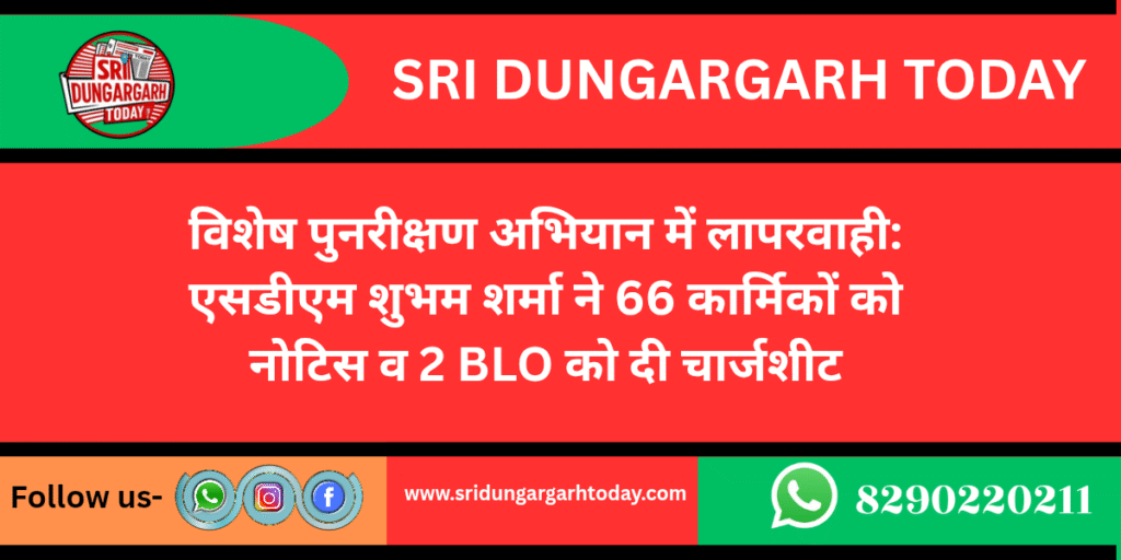 मतदाता सूची के विशेष गहन पुनरीक्षण में लापरवाही सामने आते ही प्रशासन सख्त हो गया है। एसडीएम शुभम शर्मा ने कार्रवाई करते हुए 66 कार्मिकों को नोटिस थमाए हैं। 62 बीएलओ और 4 सुपरवाइजर से कारण बताओ नोटिस जारी किया गया है। दो बीएलओ पर गंभीर लापरवाही मानते हुए 17 CCA की चार्जशीट जारी की गई है। शर्मा ने साफ कहा-पुनरीक्षण कार्य में जरा-सी भी लापरवाही बर्दाश्त नहीं होगी। प्रदेशभर में चल रहे SIR कार्य को लेकर प्रशासन लगातार मॉनिटरिंग में है।