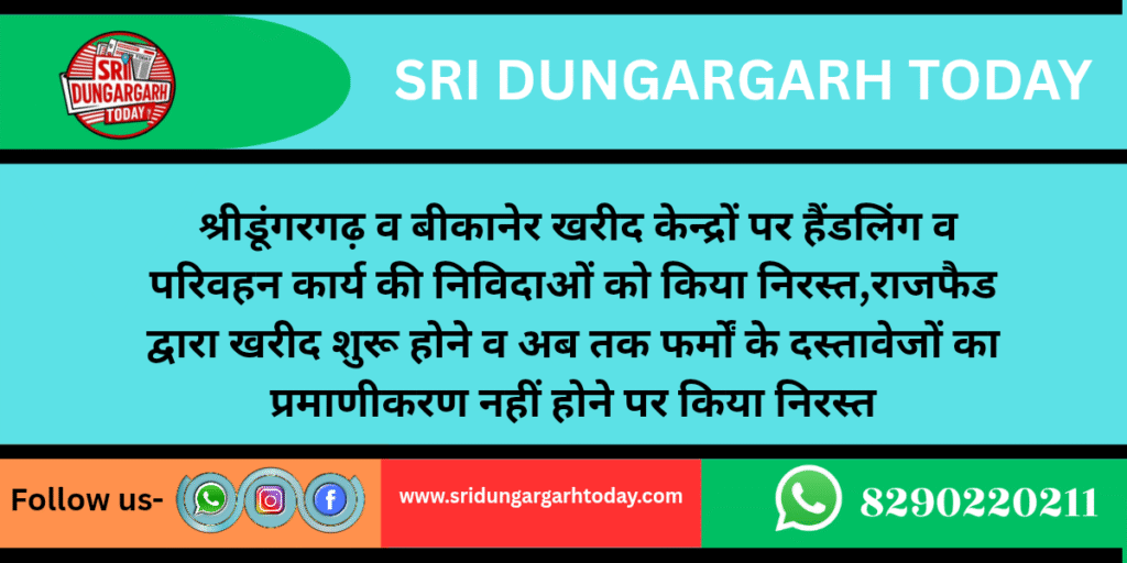 श्रीडूंगरगढ़ व बीकानेर खरीद केन्द्रों पर हैंडलिंग व परिवहन कार्य की निविदाओं को किया निरस्त,