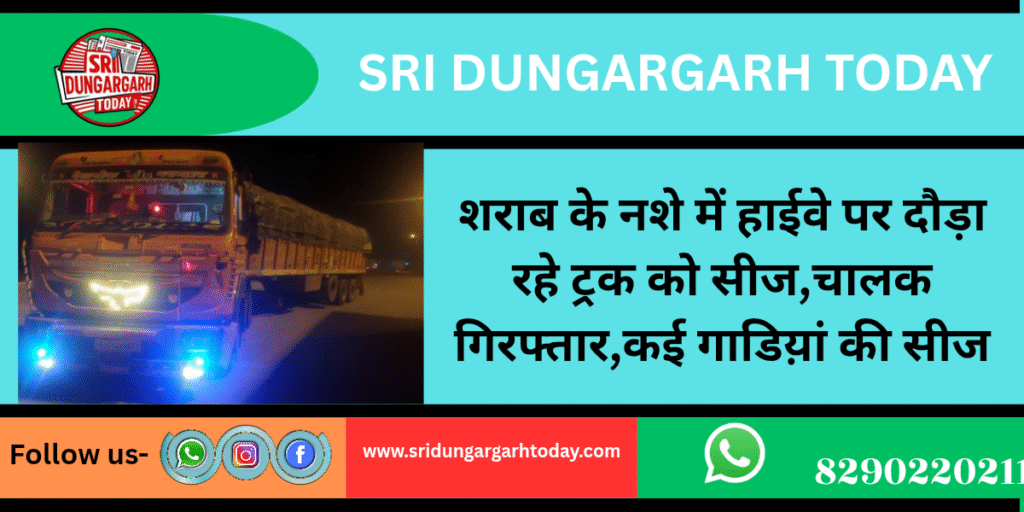 लापरवाही से शराब के नशे में हाईवे पर गाडिय़ा दौड़ा रहे ड्राइवरों पर पुलिस ने कार्रवाई की है। बीती रात को श्रीडूंगरगढ़ पुलिस ने ऐसे सात ड्राइवरों पर कार्रवाई करते हुए गाडिय़ों को सीज किया है। श्रीडूंगरगढ़ सीओ निकेत पारीक के नेतृत्व में पुलिस टीमों ने यह कार्रवाई की है। इस सम्बंध में पुलिस को सूचना मिली थी कि हाईवे पर नशे में ट्रक को लहराते हुए ड्राइवर एक ट्रक को ले जा रहा है।