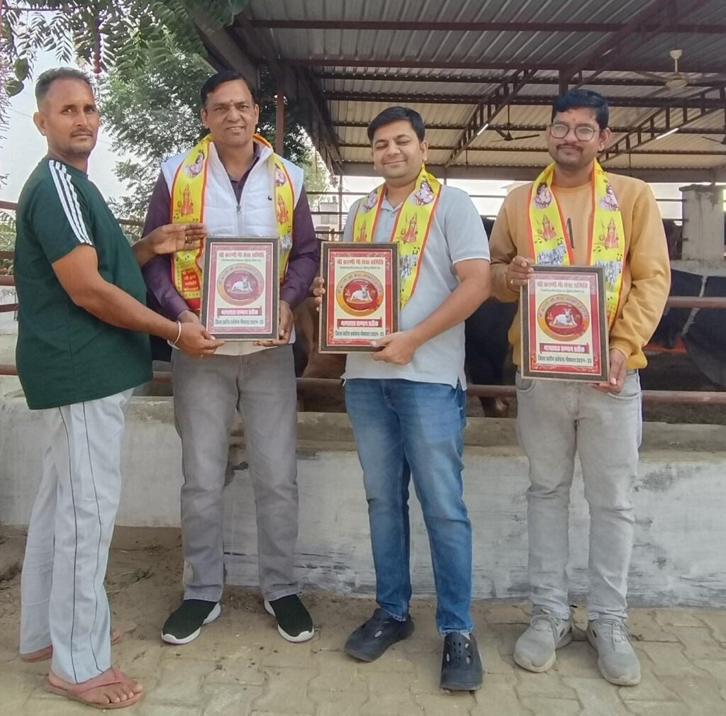 गौशाला कमेटी ने पधारें हुए अतिथियों का गौशाला कमेटी ने गौशाला स्मृति चिन्ह भेंट कर दुपट्टा पहना कर विशेष सम्मान करते हुए आभार जताया।