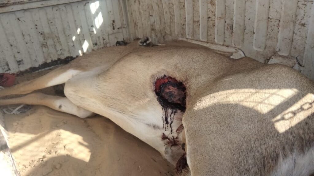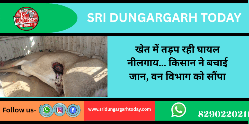 श्रीडूंगरगढ़ क्षेत्र में वन्य जीव लगातार संकट में हैं। कभी आवारा कुत्तों के हमलों से तो कभी खेतों में लगे तारों की चपेट में आकर ये मूक प्राणी घायल हो रहे हैं। क्षेत्र के गांव सातलेरा की रोही में मंगलवार सुबह खेत में दर्द से छटपटा रही एक नीलगाय मिली। पेट के निचले हिस्से में गहरा घाव होने से वह चलने-फिरने में बिल्कुल असमर्थ थी।