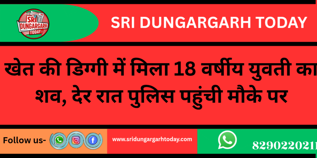 एक 18 वर्षीय युवती का शव अपने खेत में बनी पानी की डिग्गी में तैरता मिला है। घटना सेरूणा पुलिस थाना क्षेत्र के गांव भोजास की है, जहां दिवंगत ओमसिंह राजपुरोहित के खेत में उनकी पत्नी अपनी पुत्री 18 वर्षीय राजलक्ष्मी के साथ रहती थी। खेत बेनीसर के एक परिवार को काश्त के लिए दिया हुआ था।
