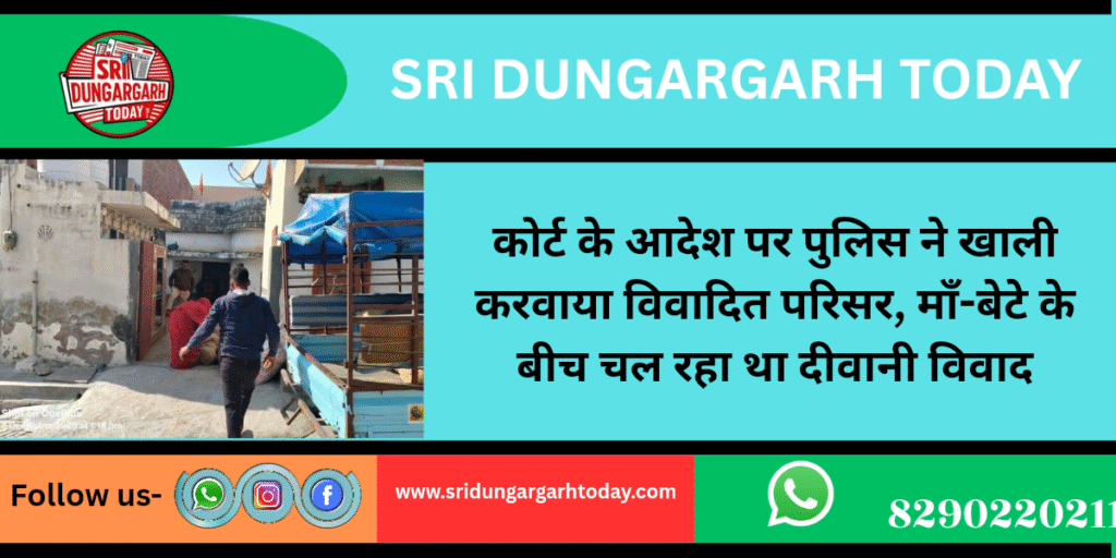 मूल दीवानी प्रकरण में पारित निर्णय व डिक्री की पालना करवाते हुए बुधवार को श्रीडूंगरगढ़ न्यायालय के आदेश पर पुलिस व कोर्ट टीम ने आडसर पास स्थित एक विवादित परिसर को खाली करवाया। मामला गाँव की वादिनी इंद्रा झंवर और उसके बेटे-बहू दिनेश झंवर व रीना के मध्य चल रहे दीवानी विवाद से जुड़ा है।