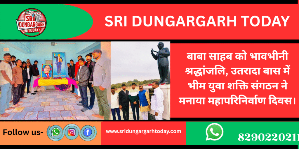 संविधान निर्माता भारत रत्न डॉ. भीम राव अंबेडकर के 69वें महापरिनिर्वाण दिवस के अवसर पर शनिवार को उतरादा बास में श्रद्धांजलि कार्यक्रम आयोजित कर उन्हें श्रद्धापूर्वक याद किया गया। यह विशेष कार्यक्रम भीम युवा शक्ति संगठन द्वारा स्थानीय अंबेडकर की लाइब्रेरी में आयोजित किया गया। जिसमें बड़ी संख्या ग्रामीणों ने भाग लिया।