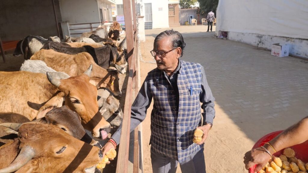 इस दौरान चोरडिया के सुपुत्र वीरेंद्र पुत्रवधू मोनिका पौत्र कुंथु पोत्री बबीता सहित गौशाला पधार कर गौ वंश को गुड़ का पावन भोग लगाया गौशाला का अवलोकन करने के बाद गौशाला कमेटी के साथ गौशाला के विकास हेतु एवं गौ सेवा हेतु विशेष चर्चा। गौशाला कमेटी का मार्गदर्शन करते हुए चोरड़िया ने कहा कि आने वाले समय में गौशाला विकास हेतु निर्माण कार्य करवाए जाएंगे। जिससे गौवंश को बेहतर सुविधाएं उपलब्ध हो सकें।