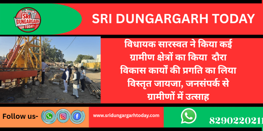 श्रीडूंगरगढ़ विधायक ताराचंद सारस्वत ने विधानसभा क्षेत्र के कई ग्रामीण इलाकों का दौरा कर क्षेत्र में जारी विकास गतिविधियों की प्रगति का जायजा लिया। उन्होंने विभिन्न गांवों में आयोजित स्थानीय कार्यक्रमों में भाग लेते हुए ग्रामीणों से सीधे संवाद किया और उनकी समस्याएं सुनी