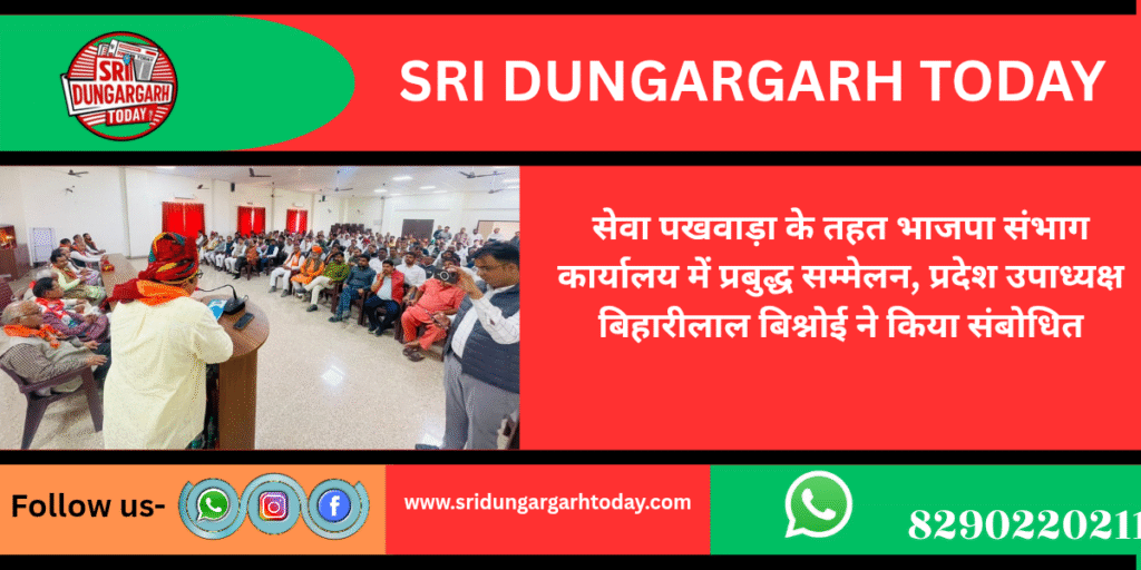 भाजपा संभाग कार्यालय, बीकानेर में सेवा पखवाड़ा के तहत प्रबुद्ध सम्मेलन का आयोजन किया गया। सम्मेलन को प्रदेश उपाध्यक्ष बिहारीलाल बिश्नोई ने संबोधित करते हुए केंद्र व राज्य सरकार की जनकल्याणकारी योजनाओं की जानकारी दी और कार्यकर्ताओं से संगठन को मजबूत करने का आह्वान किया।