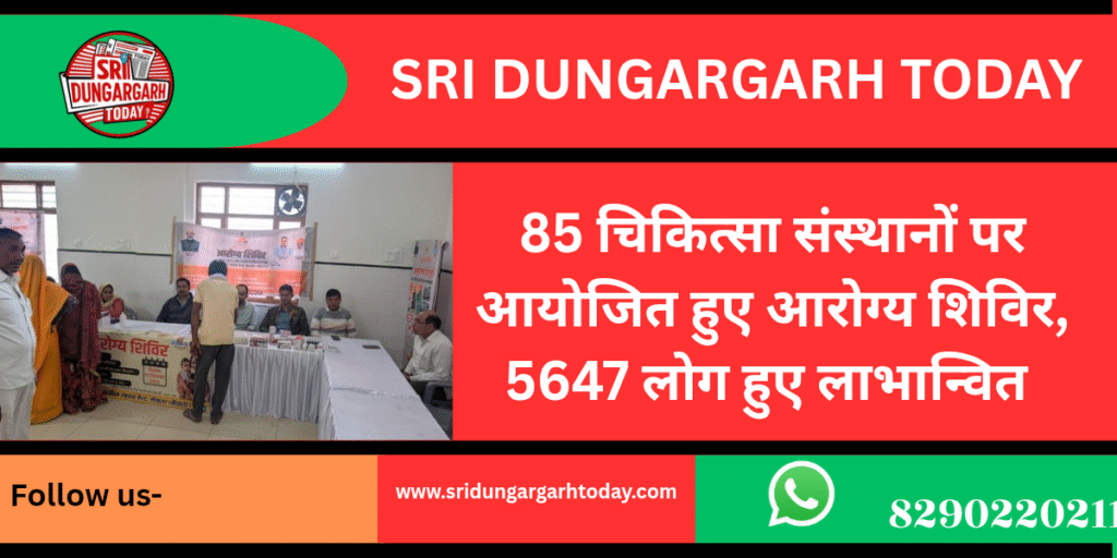 श्रीडूंगरगढ़ क्षेत्र में सोमवार को 85 चिकित्सा संस्थानों पर आरोग्य शिविरों का आयोजन किया गया। शिविरों में चिकित्सा विभाग द्वारा संचालित विभिन्न सरकारी योजनाओं की जानकारी दी गई तथा लोगों को योजनाओं का लाभ लेने के लिए जागरूक किया गया। शिविरों में जनप्रतिनिधियों की मौजूदगी भी रही।