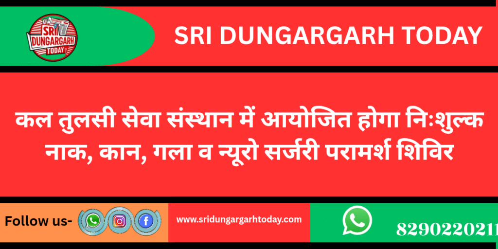 तुलसी मेडिकल एण्ड रिसर्च सेण्टर अस्पताल,श्रीडूँगरगढ़ में बुधवार 17 दिसंबर को नाक, कान, गला व न्यूरो सर्जरी निःशुल्क परामर्श शिविर आयोजित किया जाएगा।