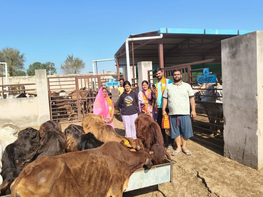 श्री गोपाल गौशाला दुलचासर में हरिकिशन मुंधड़ा निवासी दुलचासर प्रवासी कोलकाता के सुपुत्र दिलीप कुमार मुंधड़ा, पुत्रवधू सुशीला, पौत्र केशव मुंधड़ा, पौत्र वधू वैष्णवी, पौत्र विष्णु मुंधड़ा पौत्री साक्षी मुंधड़ा ने गौशाला में पधारकर गौशाला का भ्रमण कर अवलोकन किया तथा गोमाताओं की सेवा कर पौष्टिक आहार लापसी का पावन भंडारा कर अपने हाथों से भोग लगाया है। इस दौरान भंडारा वितरण में मुरलीधर मुंधड़ा निवासी दुलचासर ने सहयोग कर पूण्य अर्जित किया। सचिव रेवंतसिंह पड़िहार ने बताया कि मुंधड़ा परिवार ने रु 4100/-की पावन राशि भी समर्पित की है। गौशाला कमेटी ने दानदाताओं का आभार प्रकट करते हुए ईश्वर से सदैव सुख समृद्धि कि कामना की ।