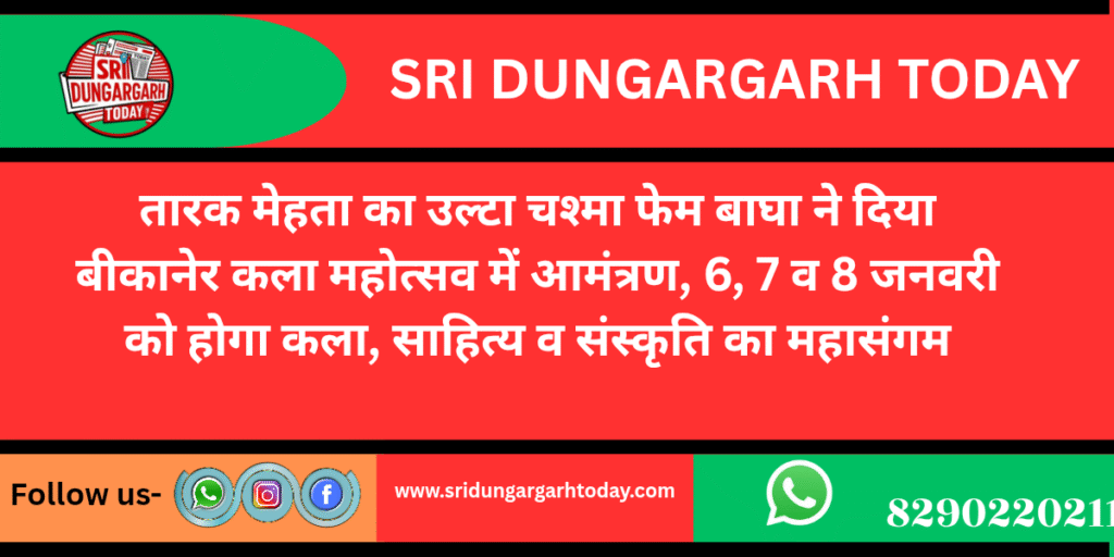 बीकानेर। बीकानेर कला महोत्सव सीजन-2 के चर्चे अब राजस्थान में ही नहीं बल्कि फिल्मी दुनिया तक भी हो रहे हैं। प्रसिद्ध शो तारक मेहता का उल्टा के प्रसिद्ध कलाकार बाघा यानी तन्मय वेकरिया ने भी अब बीकानेर कला महोत्सव सीजन-2 से जुड़ने की अपील की है। बॉलीवुड में ख्यातिप्राप्त ज्योतिषी व महोत्सव की सलाहकार समिति के सदस्य पंडित प्रदीप किराडू ने बताया कि बाघा यानी तन्मय ने बीकानेर कला महोत्सव की परिकल्पना को बेहतरीन बताया। उन्होंने बीकानेर सहित पूरे राजस्थान व देश दुनिया में फैले राजस्थानियों से इस महोत्सव में शामिल होने की अपील की है।