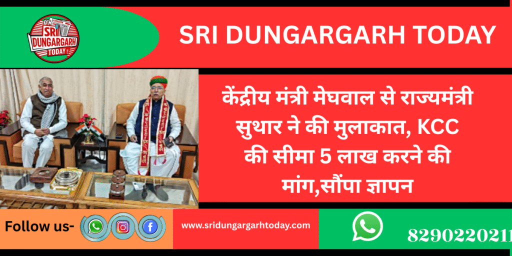 भेंट के दौरान राज्यमंत्री सुथार ने किसान क्रेडिट कार्ड (KCC) की वर्तमान 3 लाख रुपये की सीमा को बढ़ाकर 5 लाख रुपये करने तथा इस पर ब्याज में अतिरिक्त छूट दिए जाने की मांग रखी। उन्होंने बताया कि बढ़ती लागत और कृषि संबंधी खर्चों को देखते हुए यह कदम किसानों के लिए बेहद राहतकारी साबित होगा।