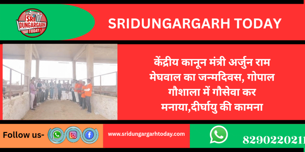 बीकानेर के लोकप्रिय एवं लोकलाडले सांसद तथा केंद्रीय कानून मंत्री अर्जुन राम मेघवाल के जन्मदिवस के अवसर पर भारतीय जनता पार्टी ओबीसी मोर्चा श्रीडूंगरगढ़ की ओर से सेवा व श्रद्धा का कार्यक्रम आयोजित किया गया। इस अवसर पर स्थानीय गोपाल गौशाला में गोमाता को गुड़ खिलाकर माननीय मंत्री की दीर्घायु, उत्तम स्वास्थ्य और यशस्वी जीवन की कामना की गई।