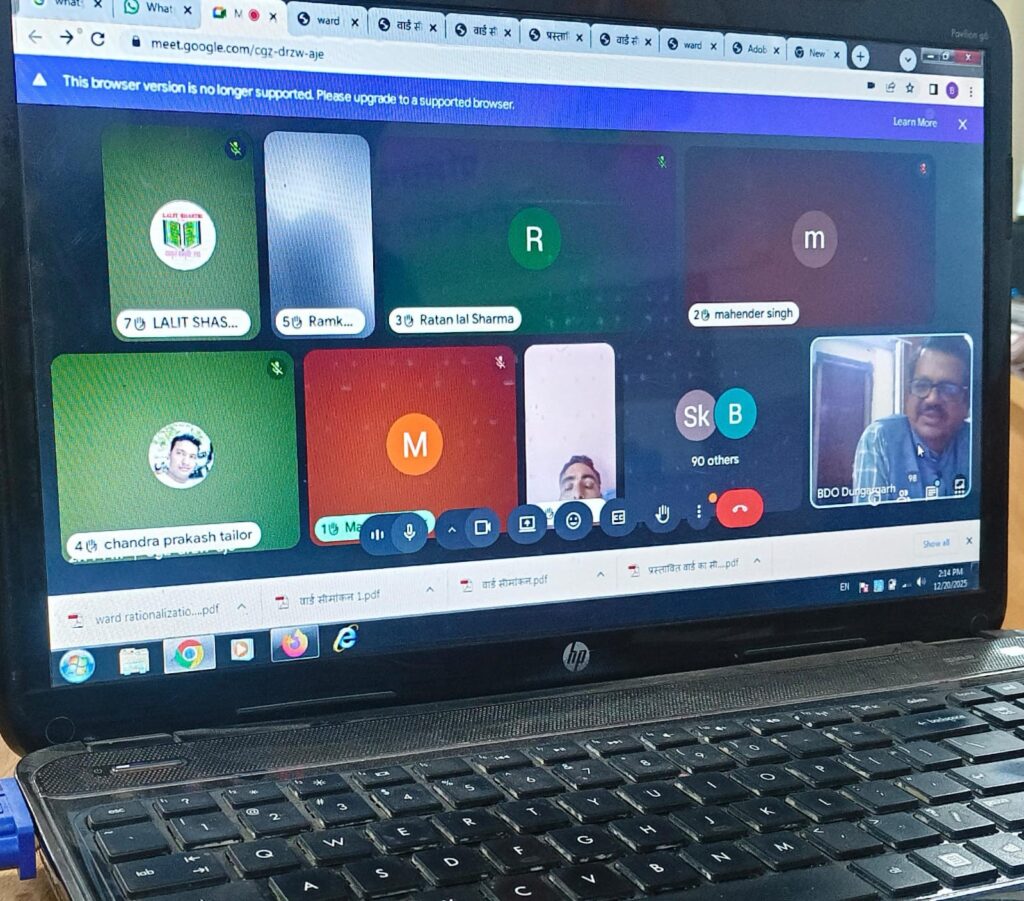 ग्रामीण विकास एवं पंचायती राज विभाग राजस्थान एवं श्रीमान जिला निर्वाचन अधिकारी महोदय के निर्देशानुसार आज दिनांक 20 दिसंबर 2025 को पंचायत समिति सभागार श्रीडूंगरगढ़ में ग्राम पंचायतों में वार्ड गठन कार्य हेतु क्षेत्र के भू- अभिलेख निरीक्षक, पटवारी और ग्रामविकास अधिकारियों का एक आवश्यक प्रशिक्षण श्रीवर्धन शर्मा तहसीलदार श्रीडूंगरगढ़ की अध्यक्षता रखा गया।