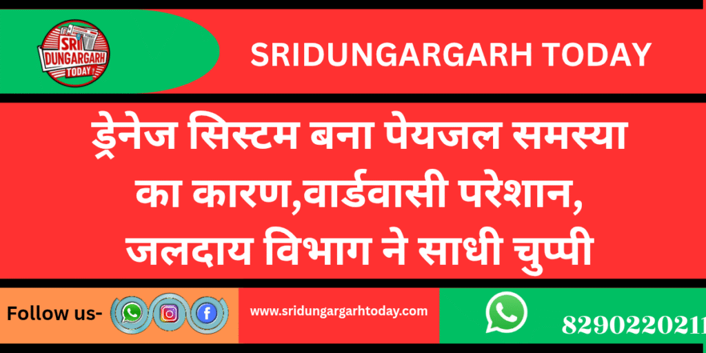 श्रीडूंगरगढ़ कस्बे के वार्ड संख्या 23 में नगरपालिका द्वारा बिछाई जा रही ड्रेनेज सिस्टम पाइपलाइन के कारण वार्डवासी गत एक सप्ताह से जलापूर्ति के लिए तरस रहे हैं।इस सम्बन्ध में जलदाय विभाग ने भी चुप्पी साध रखी है। और उच्च प्रशासन बेखबर है।
