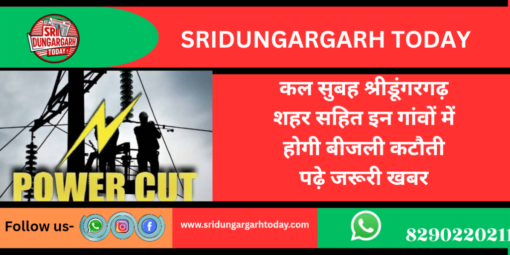 श्रीडूंगरगढ़ 132 केवी जीएसएस में जरूरी रखरखाव कार्य के चलते शुक्रवार को सुबह 8:30 बजे से 11 बजे तक बिजली आपूर्ति बंद रहेगी। एईएन चंद्रेश यादव ने बताया कि इस दौरान श्रीडूंगरगढ़ कस्बे सहित जैतासर, तोलियासर, ठुकरियासर, अभयसिंहपुरा, जैसलसर और सातलेरा क्षेत्रों में करीब ढाई घंटे बिजली कटौती रहेगी।