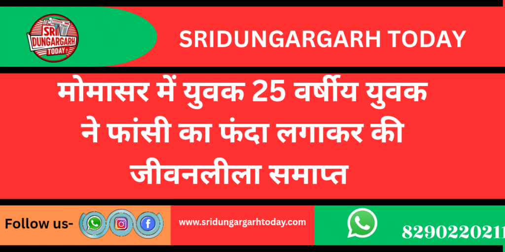 मोमासर में युवक 25 वर्षीय युवक ने फांसी का फंदा लगाकर की जीवनलीला समाप्त