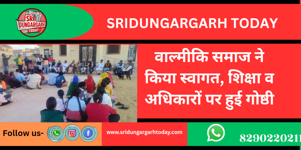 मोमासर बास के वाल्मीकि बस्ती स्थित अम्बेडकर भवन में शनिवार को वाल्मीकि समाज की ओर से रीना वाल्मीकि एंव रेखा कलोसिया का स्वागत समारोह आयोजित किया गया। कार्यक्रम में समाज के सैंकड़ों पुरूष व महिलाएं शामिल हुए।
