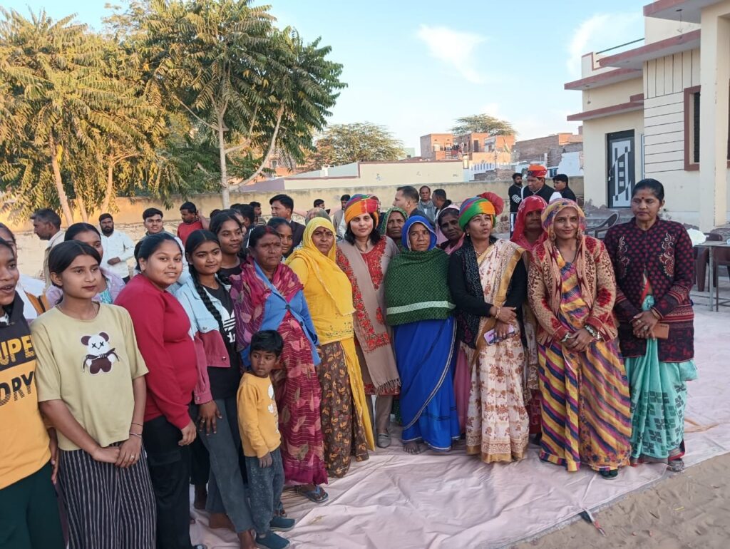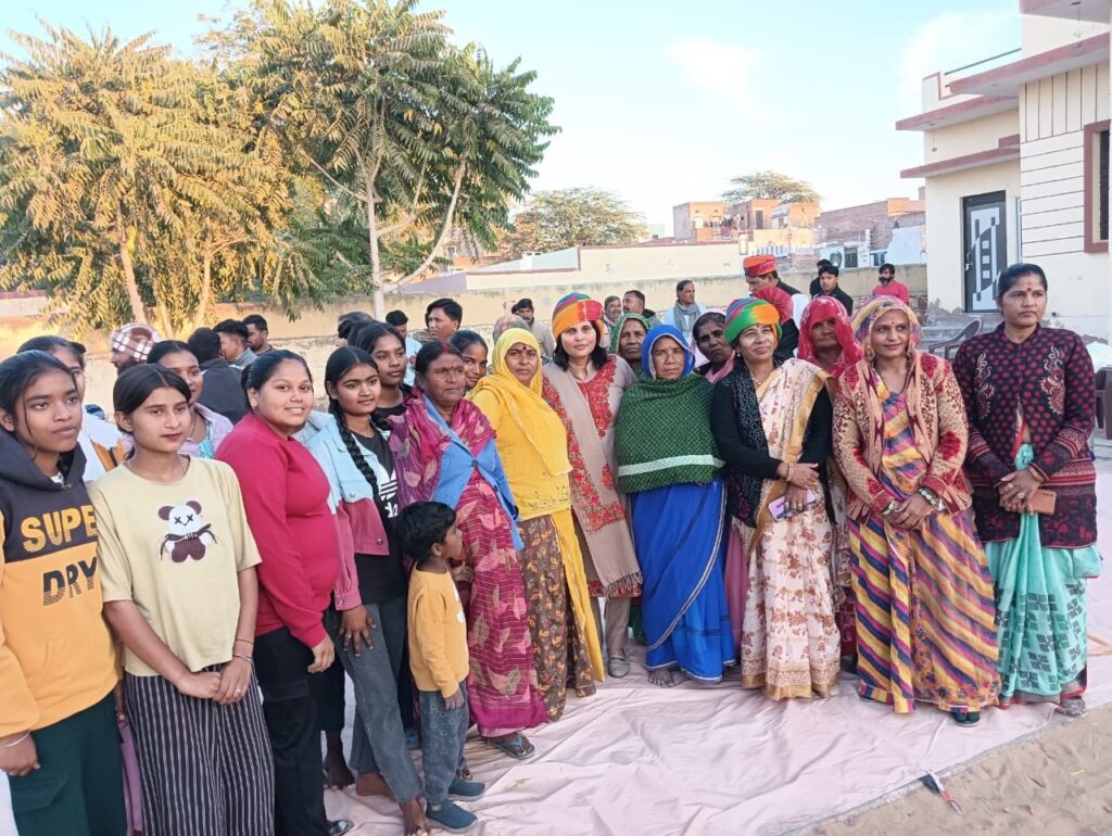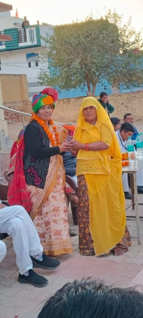 रीना वाल्मीकि का स्वागत लाली देवी द्वारा साफा व परिभारती तेजी द्वारा शॉल ओढ़ाकर किया गया।