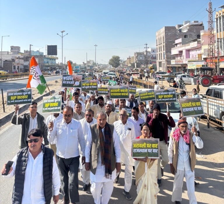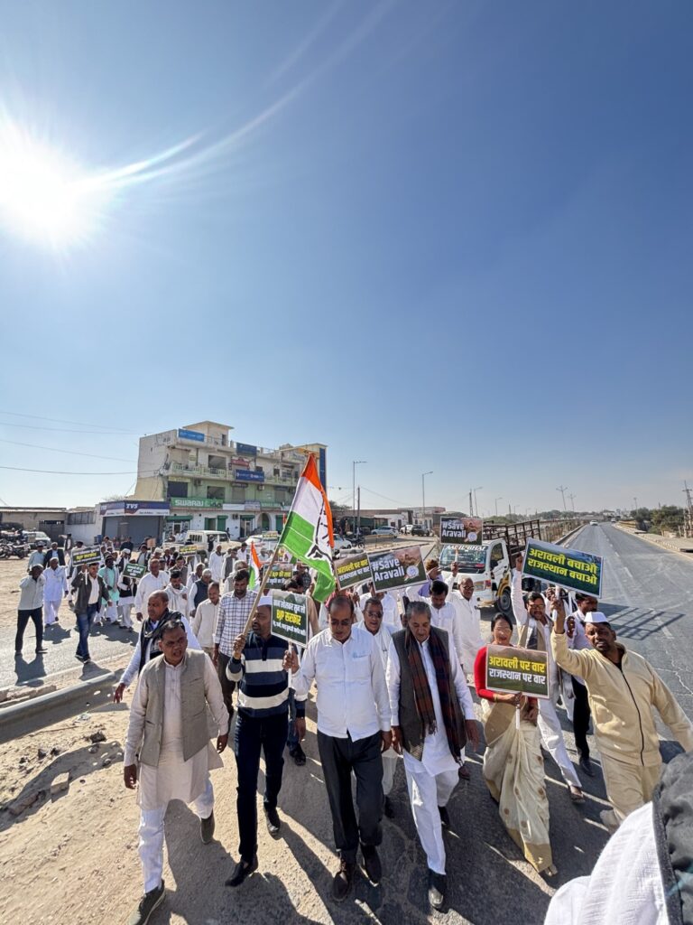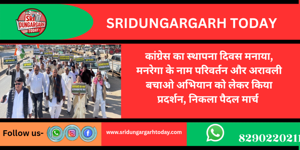 भारतीय राष्ट्रीय कांग्रेस का स्थापना दिवस रविवार को गणपति धर्म कांटा पर एक भव्य कार्यक्रम आयोजित किया गया। कार्यक्रम की अध्यक्षता पूर्व विधायक मंगलाराम गोदारा ने की। कार्यक्रम की शुरुआत ध्वजारोहण से हुई, जिसके बाद कांग्रेस कार्यकर्ताओं ने एकजुटता का संदेश देते हुए पैदल मार्च निकालकर केंद्र सरकार की नीतियों के खिलाफ विरोध दर्ज कराया।कार्यकर्ताओं ने मनरेगा योजना का नाम बदलने एवं उसे कमजोर करने के प्रयासों का विरोध करते हुए जमकर नारेबाजी की। साथ ही “अरावली बचाओ, पर्यावरण बचाओ” अभियान के तहत पर्यावरण संरक्षण का संदेश दिया गया।