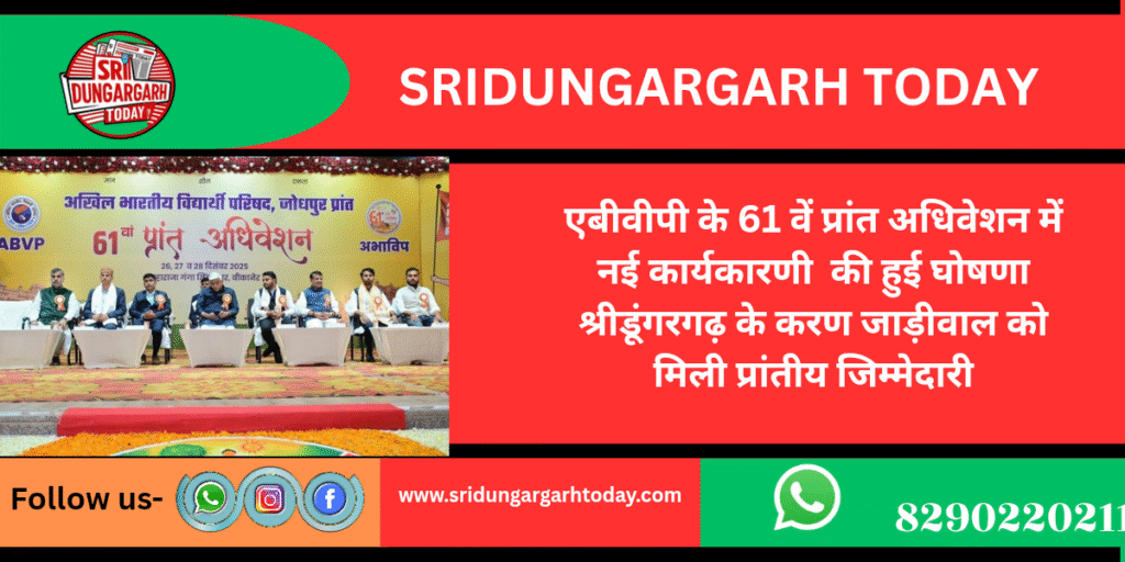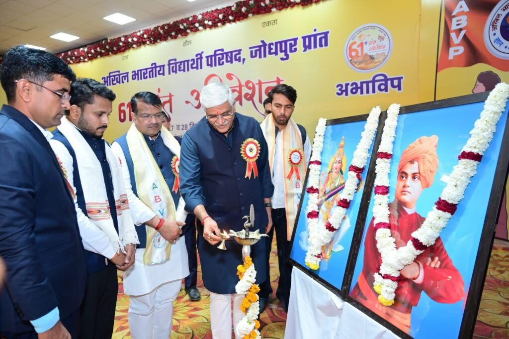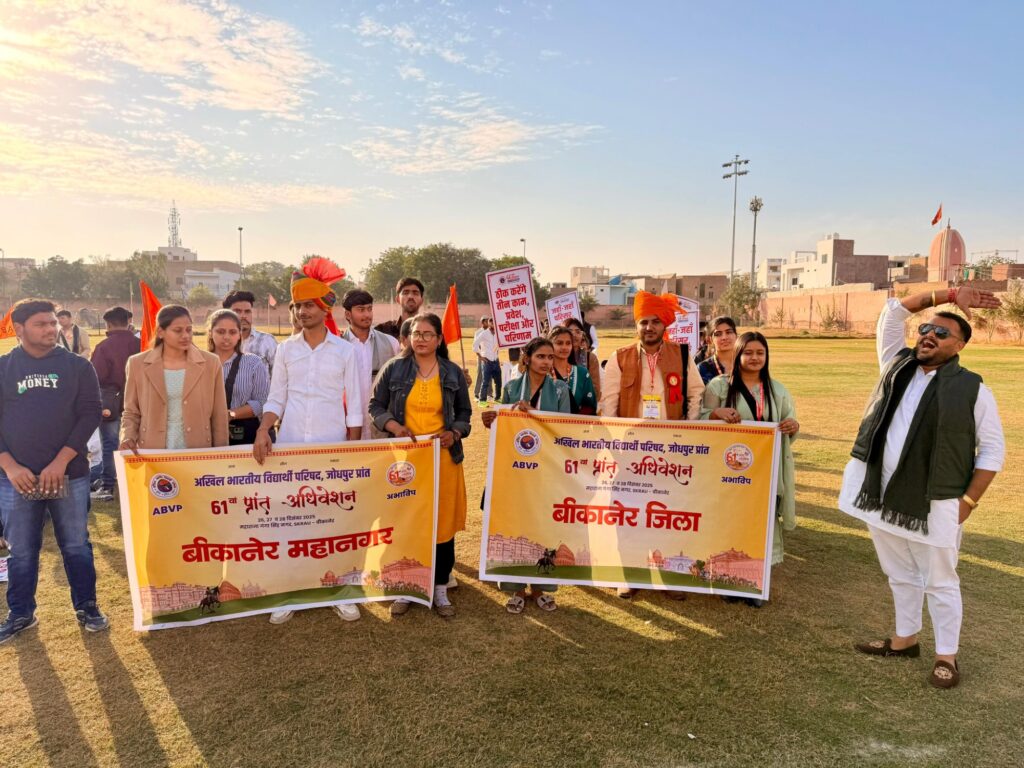 अखिल भारतीय विद्यार्थी परिषद (एबीवीपी) का 61वां प्रांतीय अधिवेशन 26, 27 व 28 दिसंबर को बीकानेर में आयोजित किया गया।अधिवेशन के उद्घाटन सत्र में भारत सरकार के संस्कृति एवं पर्यटन मंत्री गजेंद्र सिंह शेखावत मुख्य अतिथि के रूप में उपस्थित रहे। इस अवसर पर एबीवीपी के राष्ट्रीय सह संगठन मंत्री देवदत्त जोशी, राष्ट्रीय मंत्री हर्षित नमोमा, क्षेत्रीय संगठन मंत्री अश्विनी शर्मा एवं प्रांत संगठन मंत्री उपमन्यु सिंह राणा विशेष रूप से मौजूद रहे।