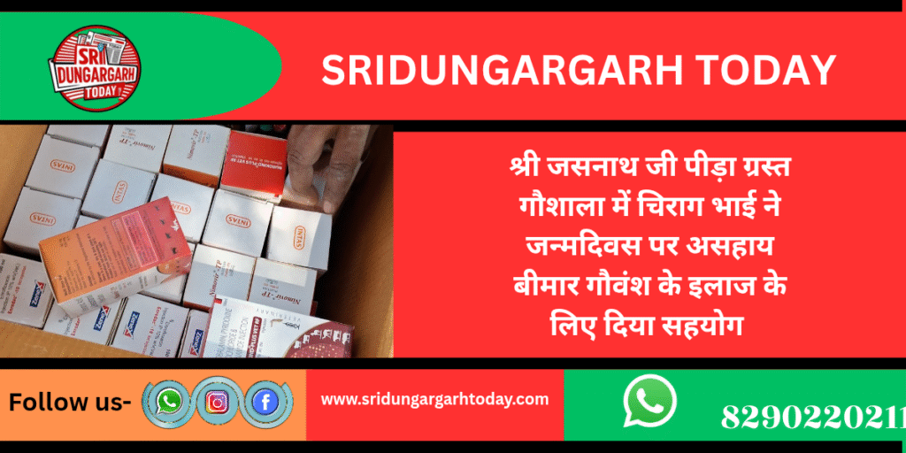 श्री जसनाथ जी पीड़ा ग्रस्त गौशाला में चिराग भाई ने जन्मदिवस पर असहाय बीमार गौवंश के इलाज के लिए दिया सहयोग