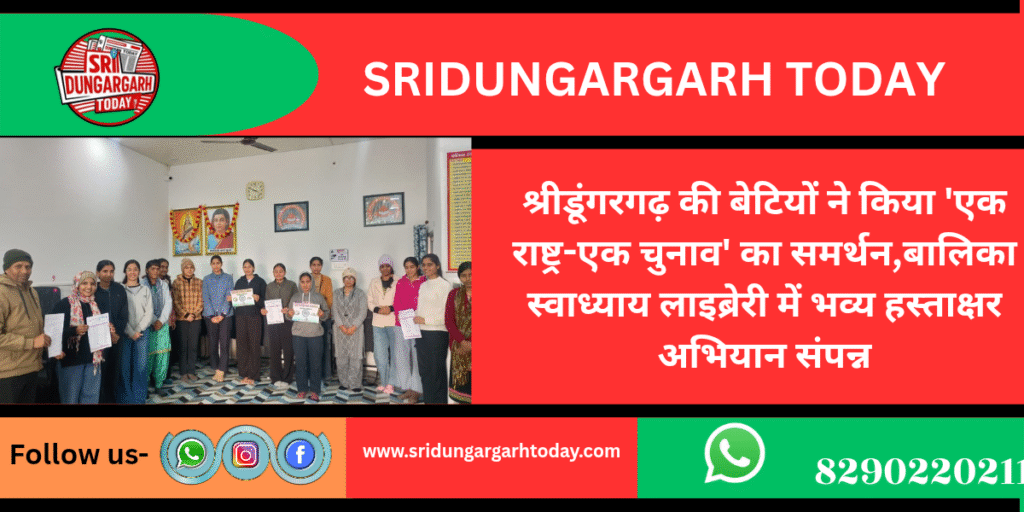 श्रीडूंगरगढ़ की बेटियों ने किया ‘एक राष्ट्र-एक चुनाव’ का समर्थन , बालिका स्वाध्याय लाइब्रेरी में भव्य हस्ताक्षर अभियान संपन्न