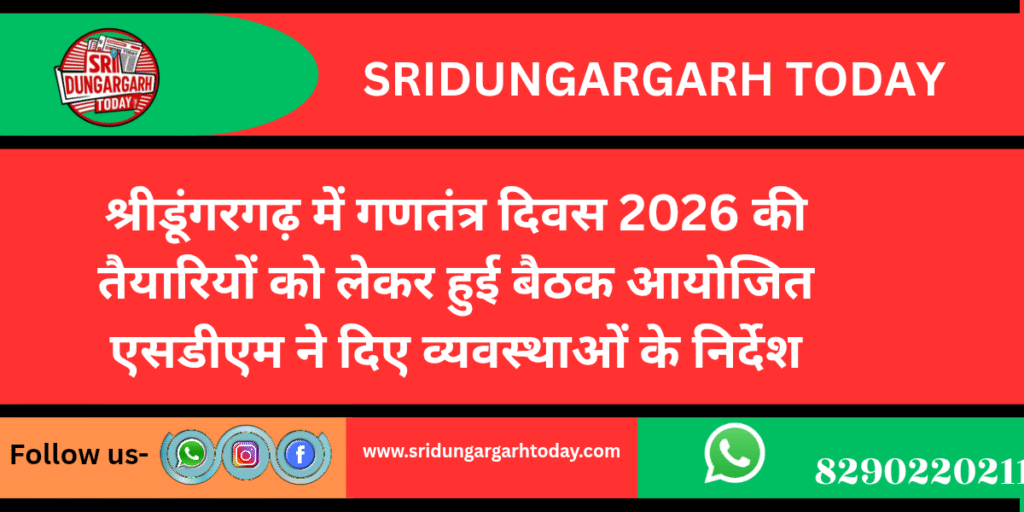 उपखण्ड अधिकारी एवं उपखण्ड मजिस्ट्रेट शुभम शर्मा की अध्यक्षता में गणतंत्र दिवस 2026 के मुख्य समारोह की तैयारी हेतु बैठक आयोजित की गई। बैठक में सर्वसम्मति से कार्यक्रम तय किए गए।